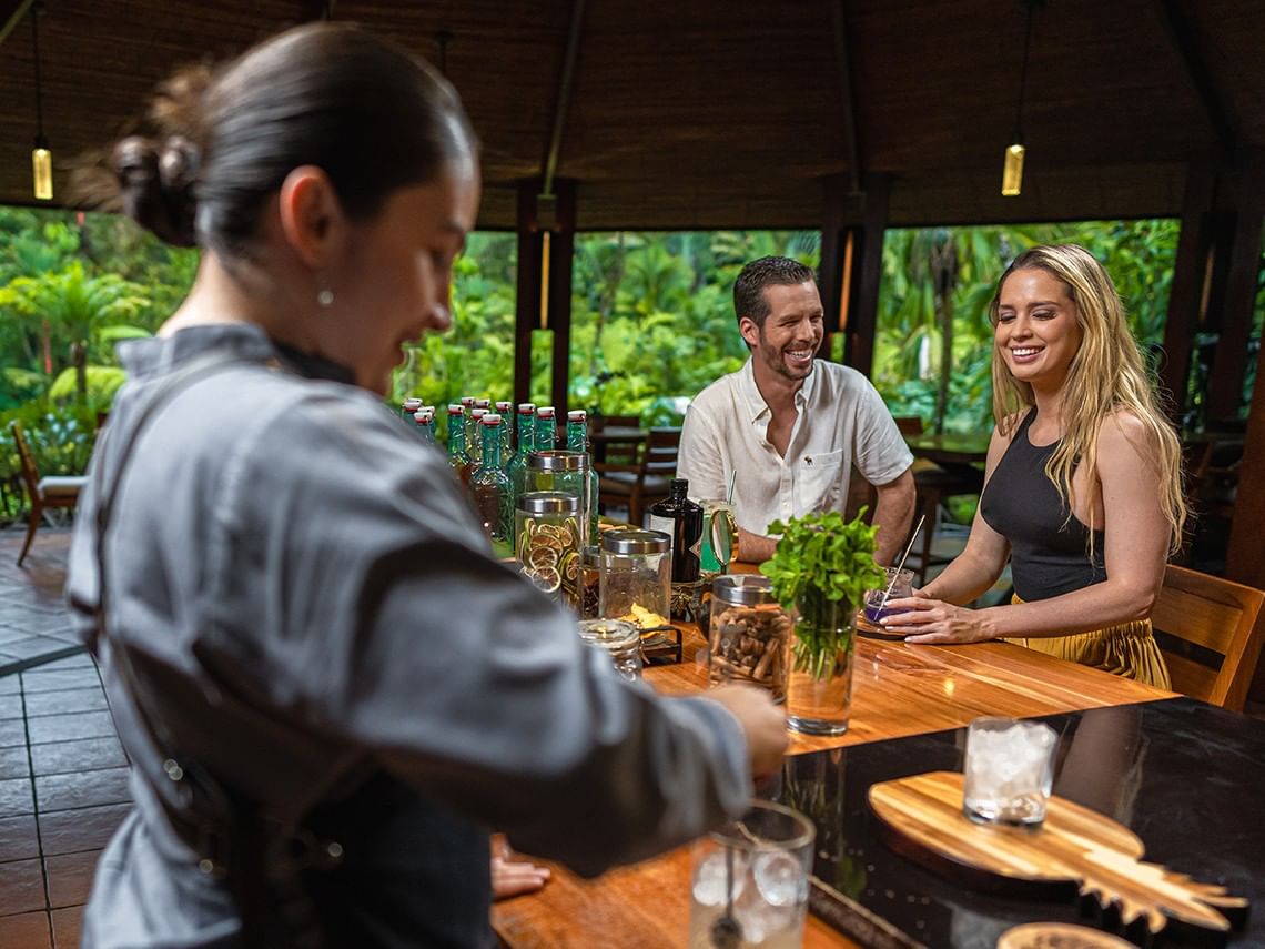 Un bar al aire libre en la selva tropical donde la coctelería creativa se combina con licores premium y aperitivos gourmet. Disfrute de cócteles tropicales creativos servidos al son del agua y el canto de los pájaros, que combinan sabores vibrantes con elegancia natural.