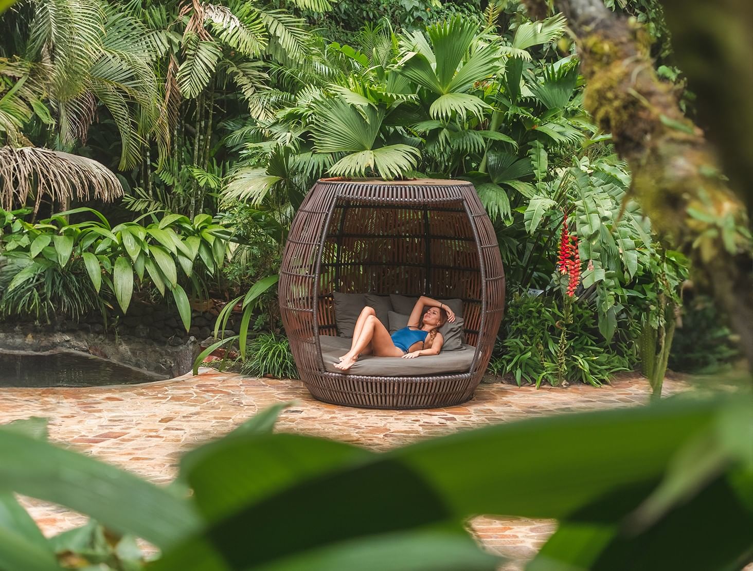 Elegancia interior combinada con una terraza privada con vistas a los jardines tropicales.